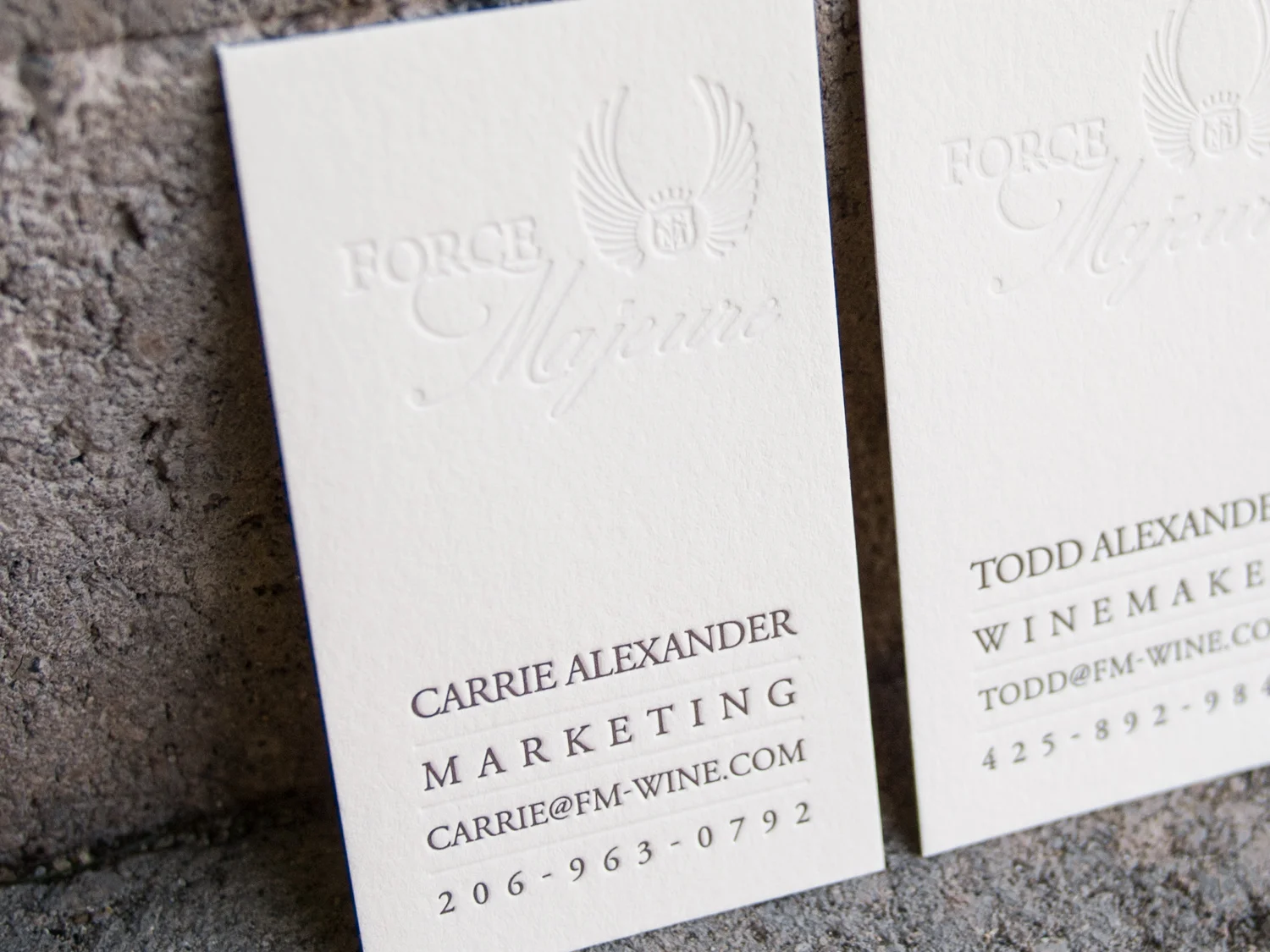 Washington’s Force Majeure Vineyard makes lovely Bordeaux and Rhone-inspired wines. We’ve been lucky enough to sample from their limited production and we think their wines pair beautifully with our custom letterpress stationery.