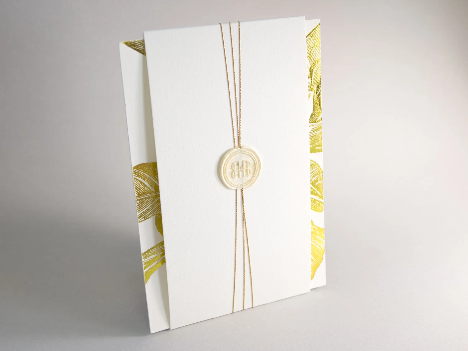 Randi finished off the set on her end with gold string and a custom wax seal. Photos of the completed invitation are below.
