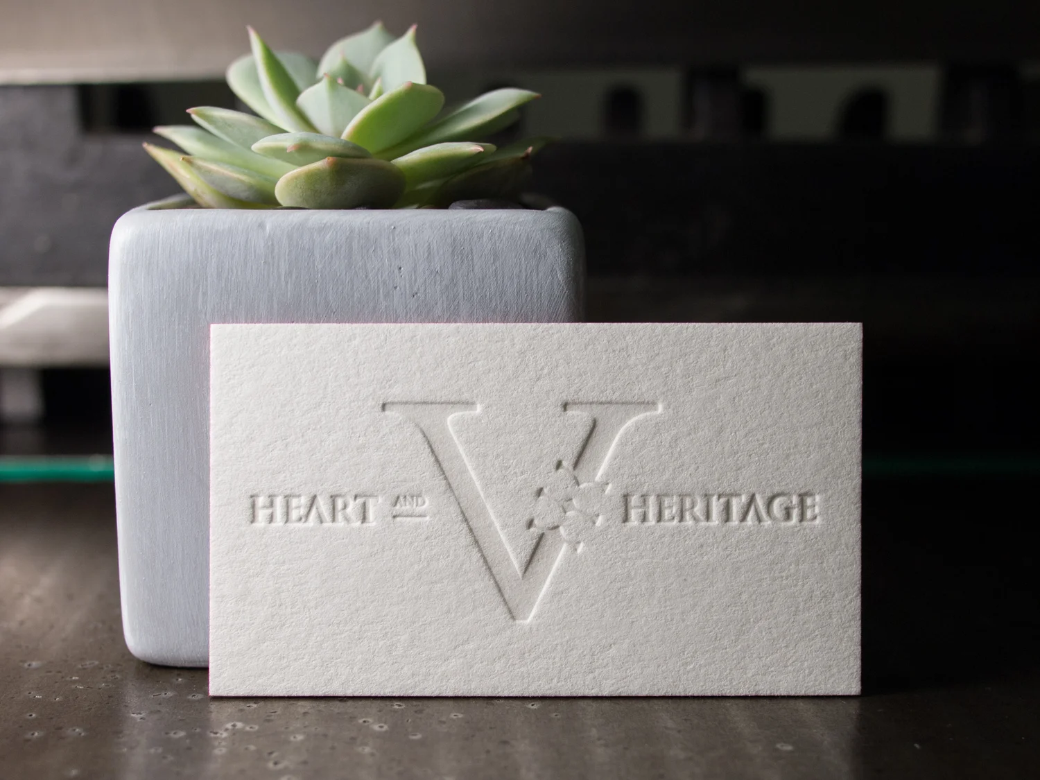 To help the impression pop, we like to use white ink tinted with a little bit of silver rather than print a completely inkless blind impression.