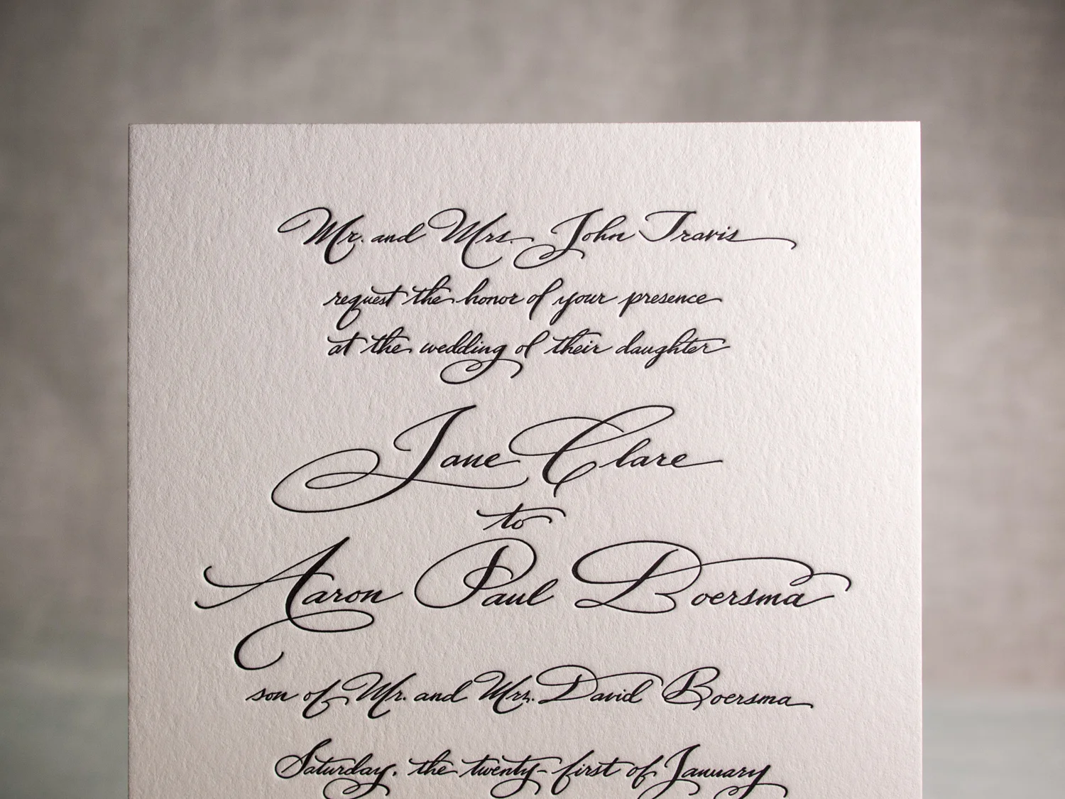 Simple black on white with beautiful calligraphy from Pier Gustafson.
