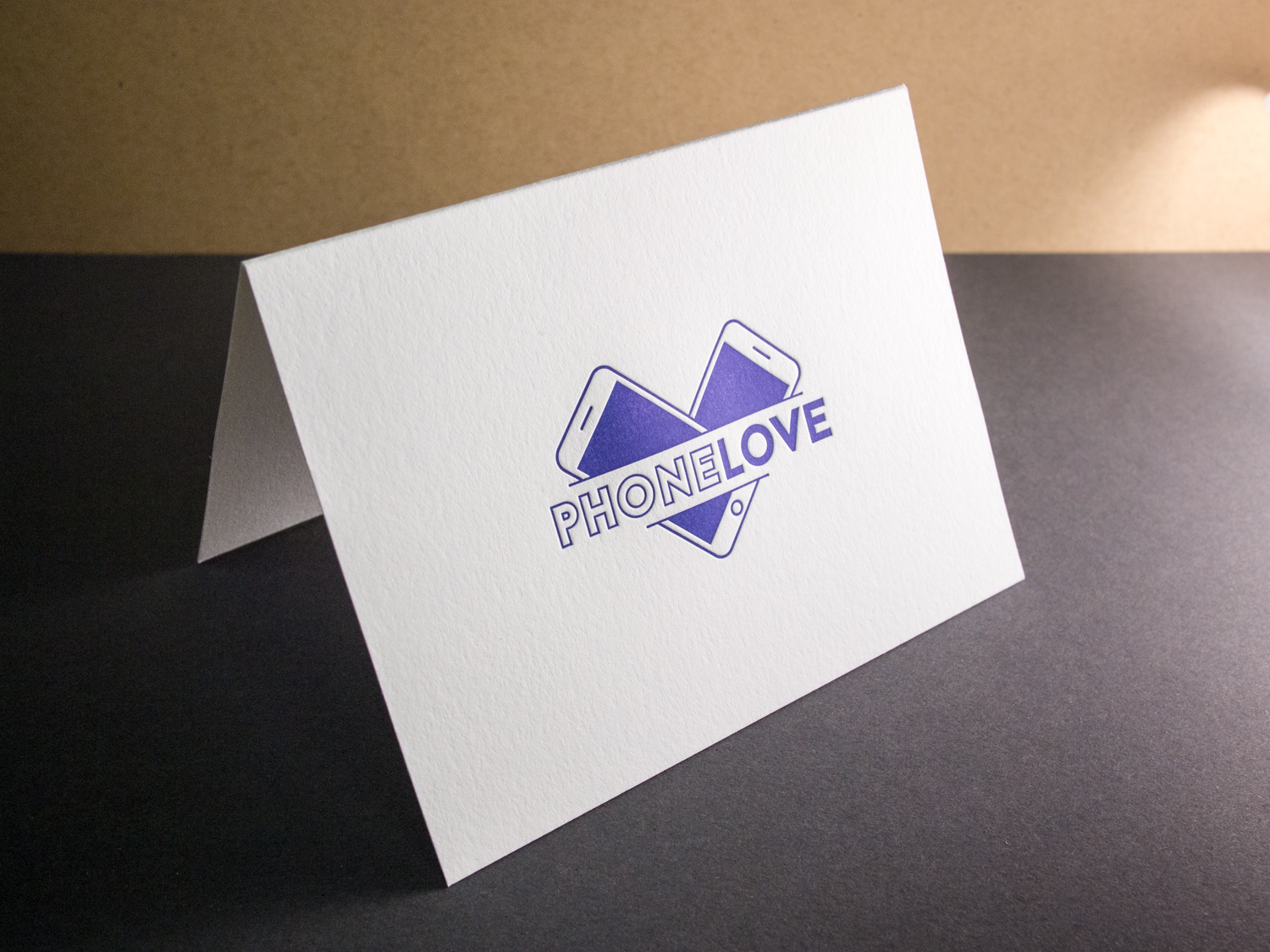 For the Portland-area phone lovers at PhoneLove we printed two-sided business cards on 600g Fluorescent White paper. Most featured purple on both sides, while select folks got a subtle tinted-white logo for a blind-deboss look.